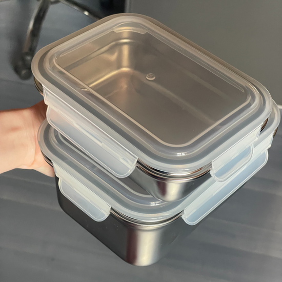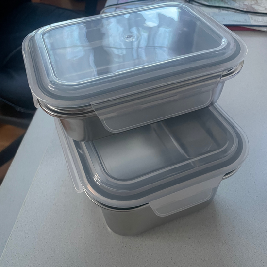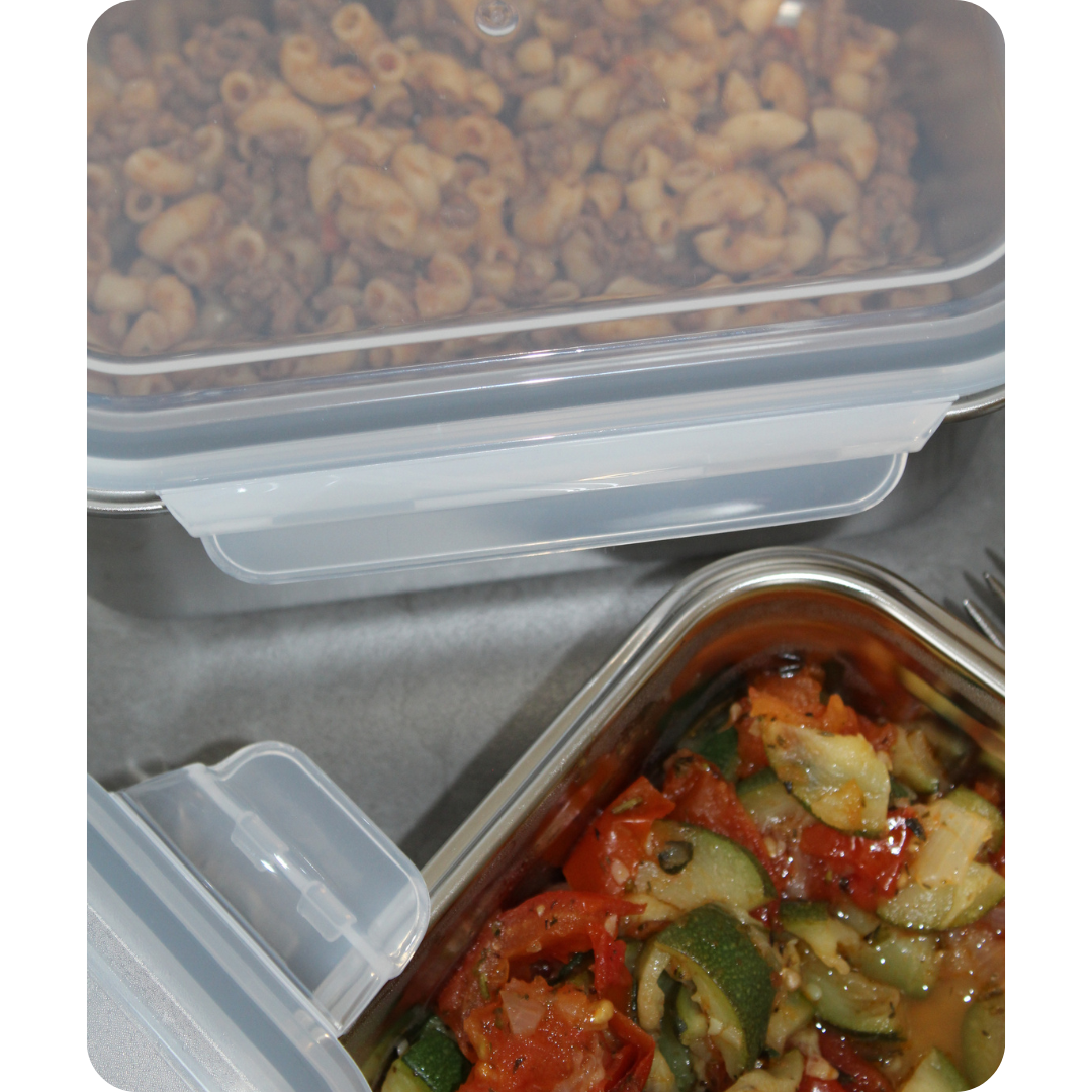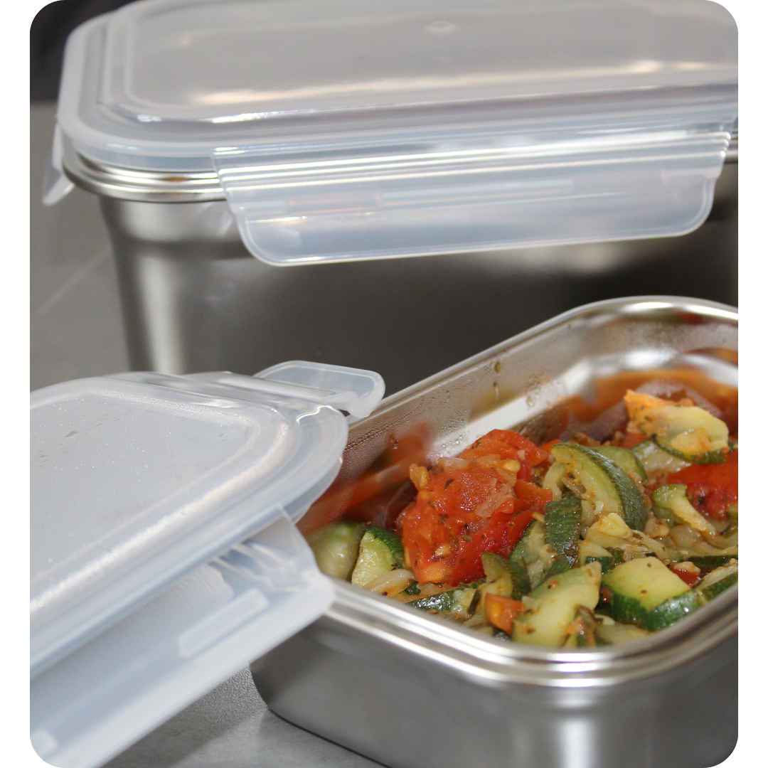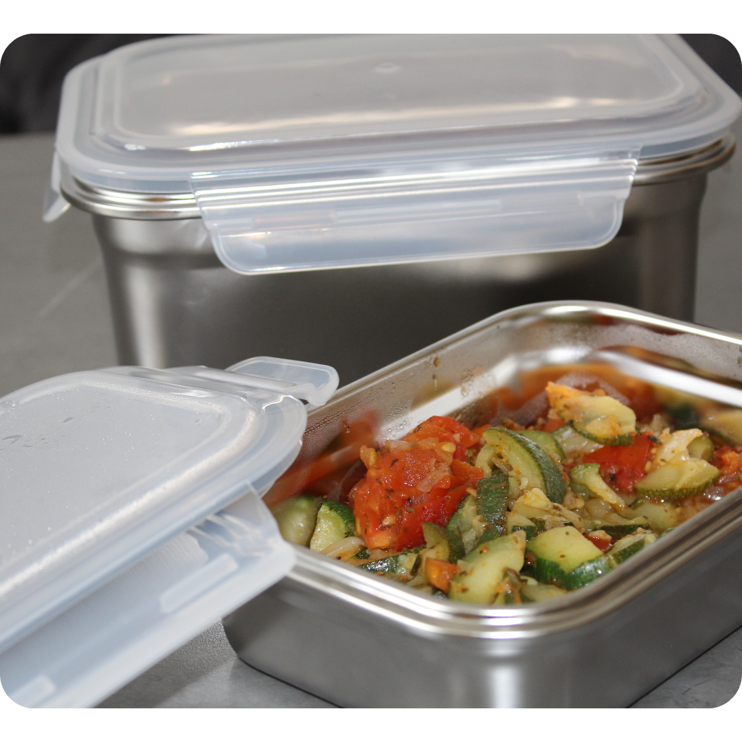 Ceux-ci servent uniquement à fermer la boîte et éviter les fuites durant le transport grâce à notre système 100% étanche ! Au micro-ondes, on le retire toujours, votre repas chauffe dans l'inox et n'a donc aucun contact avec le plastique 🤍 C'est notre compromis pour allier sécurité, praticité et confort au quotidien !