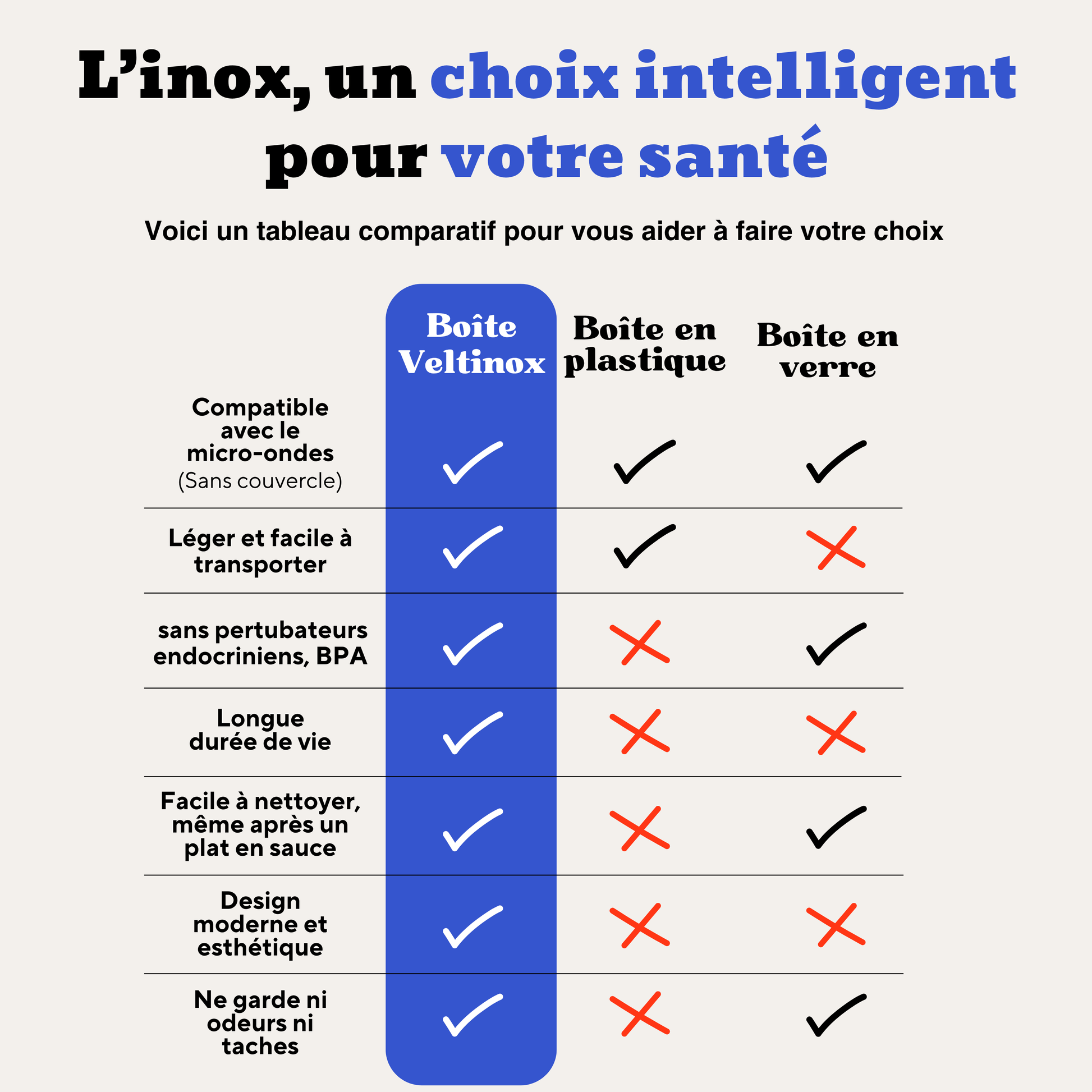 Pourquoi Veltinox est-il plus cher que les boîtes en plastique classique ?